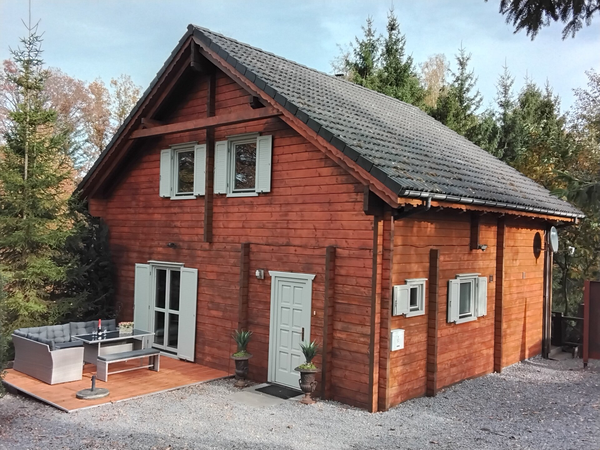 - terras aan de voor en achterzijde van de vakantiewoning .