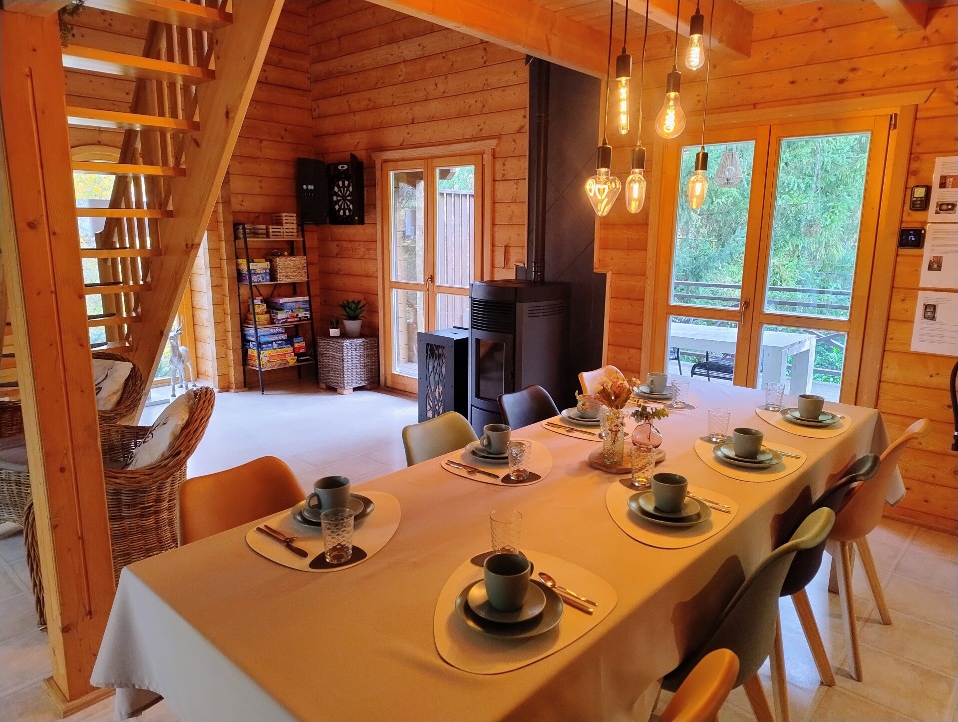Om de koudere dagen te trotseren wordt de chalet verwarmd met een pellet-kachel .